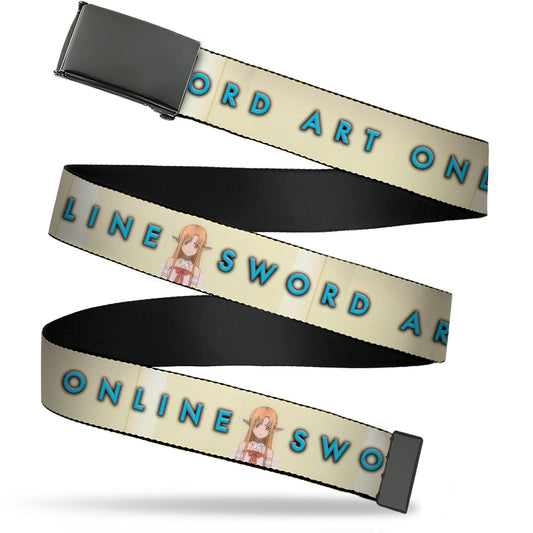 Web Belt Blank Black Buckle - SWORD ART ONLINE Asuna Yuuki Pose and Title Logo Cream Webbing