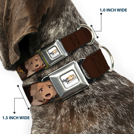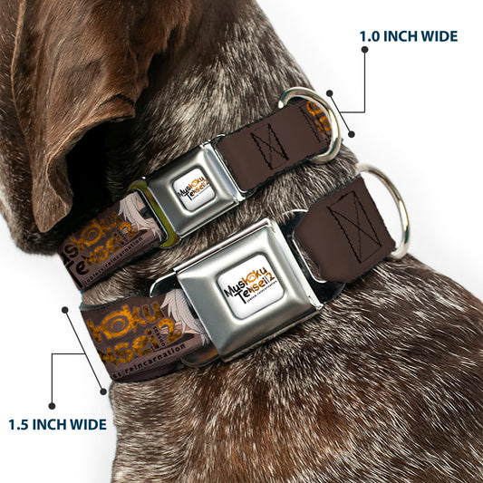 MUSHOKU TENSEI SEASON 2 JOBLESS REINACARNATION Title Logo Full Color White Seatbelt Buckle Collar - MUSHOKU TENSEI Pursena Adoldia Pose and Title Logo Browns