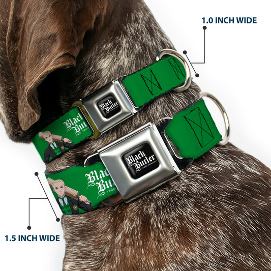 BLACK BUTLER PUBLIC SCHOOL ARC Title Logo Full Color Black/White Seatbelt Buckle Collar - BLACK BUTLER Herman Greenhill Pose and Title Logo Green