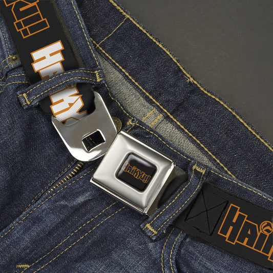 HAIKYU Title Logo Full Color Black/Orange Seatbelt Belt - HAIKYU Title Logos Black/Orange/White Webbing