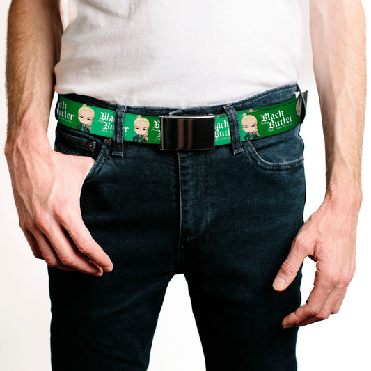 Web Belt Blank Black Buckle - BLACK BUTLER Chibi Herman Greenhill Pose and Title Logo Greens Webbing