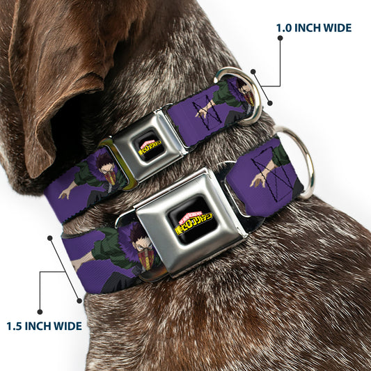 MY HERO ACADEMIA Title Logo Full Color Black Seatbelt Buckle Collar - My Hero Academia Kai Chisaki Action Pose Purple