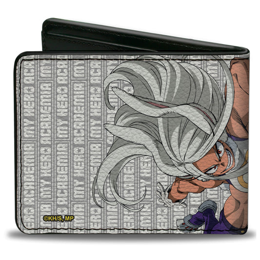 Bi-Fold Wallet - MY HERO ACADEMIA Rumi Usagiyama Pose with Text and Title Logo Gray/White