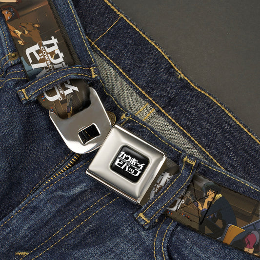 COWBOY BEBOP Title Logo Full Color Black/White Seatbelt Belt - COWBOY BEBOP Crew Group Pose and Title Logo Blocks Webbing