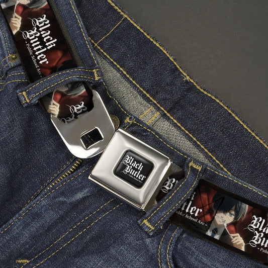 BLACK BUTLER PUBLIC SCHOOL ARC Title Logo Full Color Black/White Seatbelt Belt - BLACK BUTLER Ciel Phantomhive Fork Pose and Title Logo Webbing
