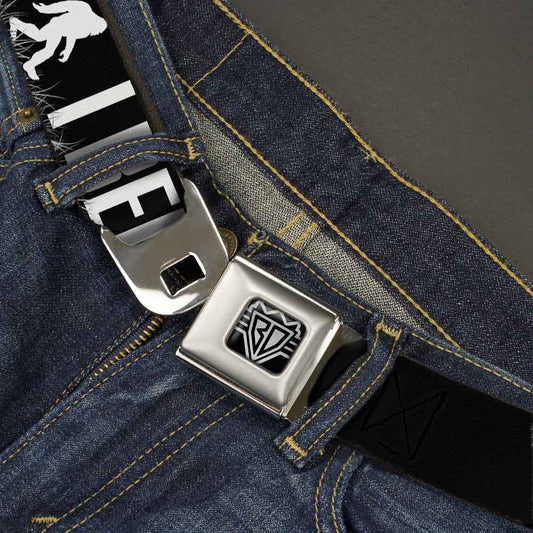 BD Wings Logo CLOSE-UP Full Color Black Silver Seatbelt Belt - Bigfoot Silhouette I BELIEVE Black/Gray/White Webbing