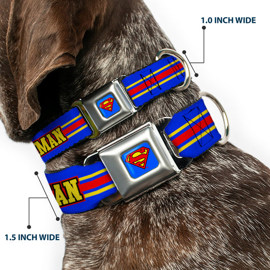 Superman Full Color Blue Seatbelt Buckle Collar - SUPERMAN/Shield Stripe Blue/Yellow/Red