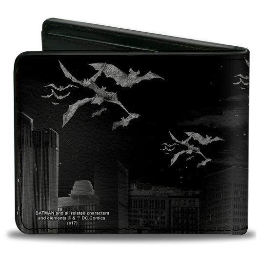 Bi-Fold Wallet - Batman Beauty of Flight Action Pose Bats Skyline Black Grays