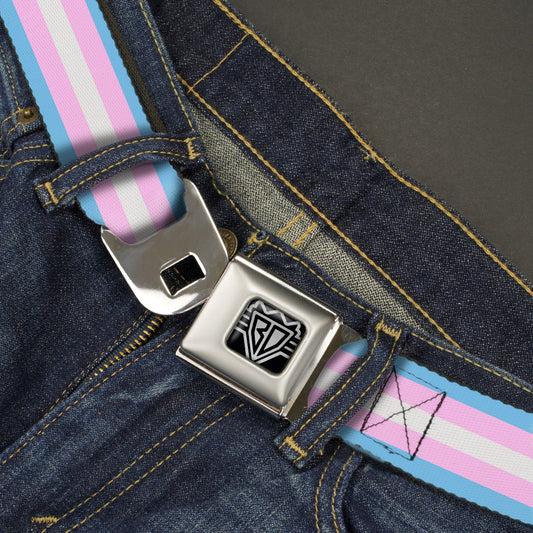 BD Wings Logo CLOSE-UP Full Color Black Silver Seatbelt Belt - Flag Transgender Baby Blue/Baby Pink/White Webbing