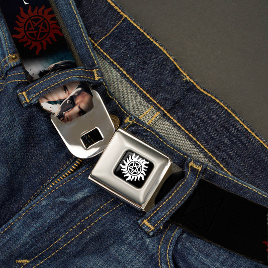 Winchester Logo Full Color Black White Seatbelt Belt - Winchester Brothers Faces CLOSE-UP & Logo Webbing