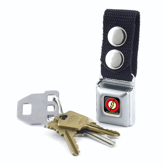 BD Wings Logo CLOSE-UP Full Color Black Silver Seatbelt Belt - LOVE IS LOVE/Heart Black/Rainbow Webbing