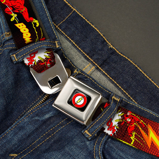 Flash Logo Black Seatbelt Belt - The Flash BOOM-KABOOM! Webbing